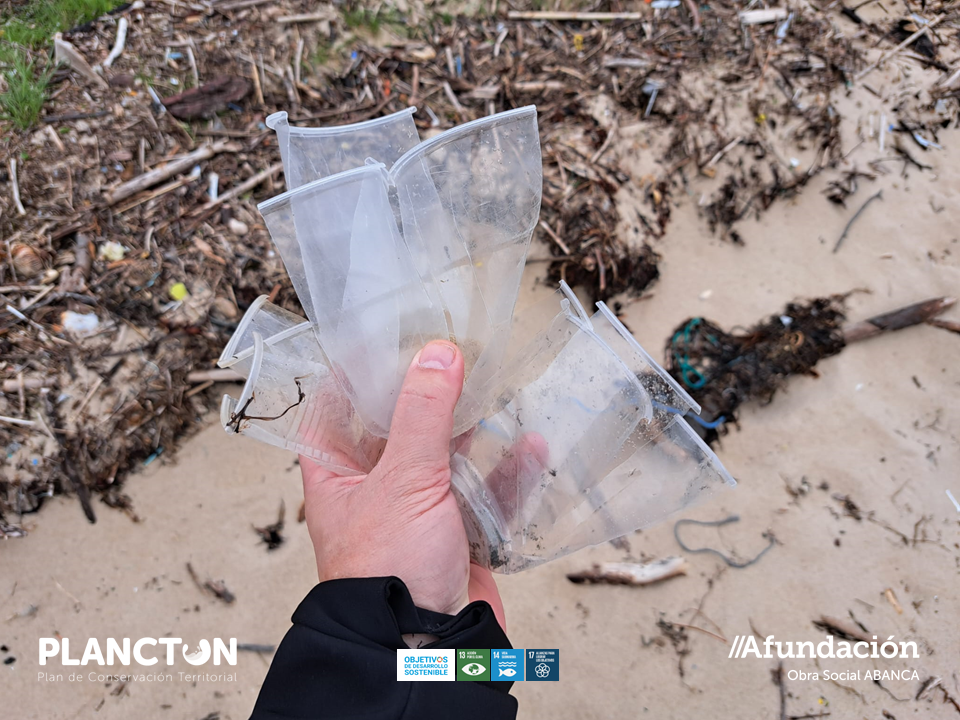 Por una parte, localizaron restos de aparejos y utensilios relacionados con la actividad pesquera como los más de 170 palillos empleados en las bateas para evitar la caída de los mejillones de las cuerdas, 400 restos de sedales, cabos y cabitos, 161 trozos de poliespán y espumas sintéticas, 8 nasas portuguesas y varios cubos plásticos.