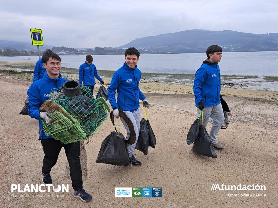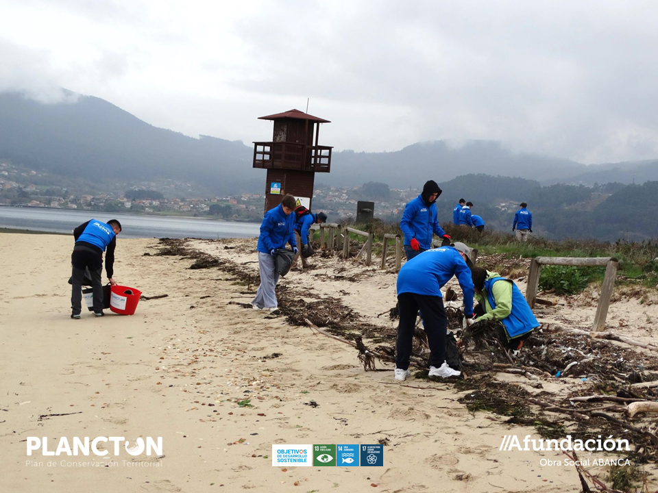 Con iniciativas de voluntariado ambiental como ésta de la playa de Cesantes, dentro del LIC de la Ensenada de San Simón, un espacio protegido integrado en la Red Natura 2000, así como a través de otras acciones formativas y de sensibilización, Afundación impulsa su plan de conservación territorial PLANCTON con el objetivo de preservar el litoral y promover la sostenibilidad de las actividades socioeconómicas que se desarrollan tanto en la costa como en medio marino. Se trata con ello de fomentar una actitud responsable por parte de la sociedad, garantizando un uso equilibrado y consciente de los recursos naturales, compatible con su disfrute presente y con su conservación futura. Todo esto en coherencia con el compromiso de la Obra Social de ABANCA con los Objetivos de Desarrollo Sostenible, de manera especial con los ODS 13 Acción por el clima, ODS 14 Vida submarina y ODS 17 Alianzas para lograr los objetivos.